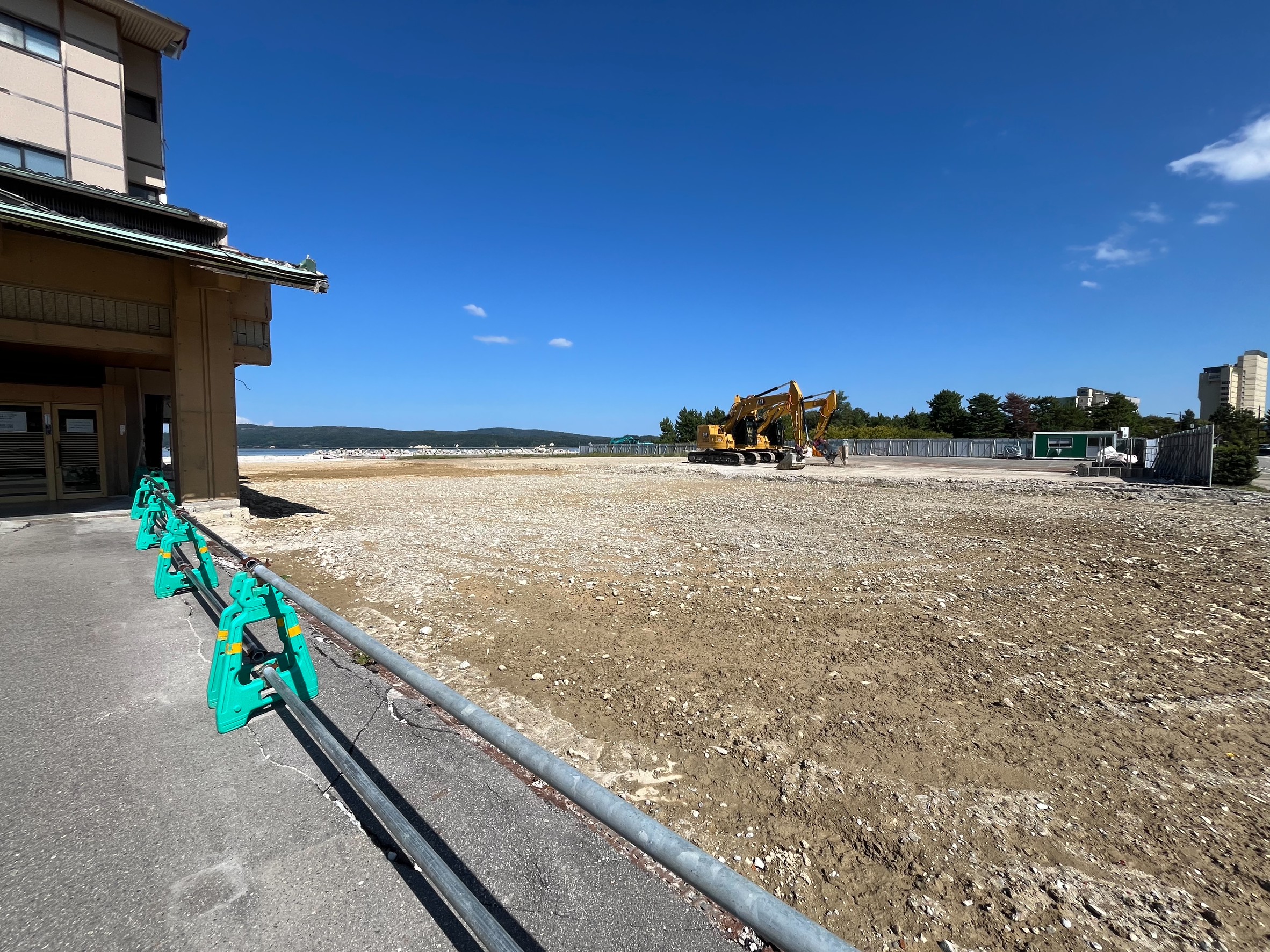 解体工事は順調に進んでおります。 関係各所様のご努力により、宿泊棟3棟は予定よりもかなり早く工事が進みました。 厚く御礼申し上げます。 写真の通り、建物があった場所はほぼ平地にな…